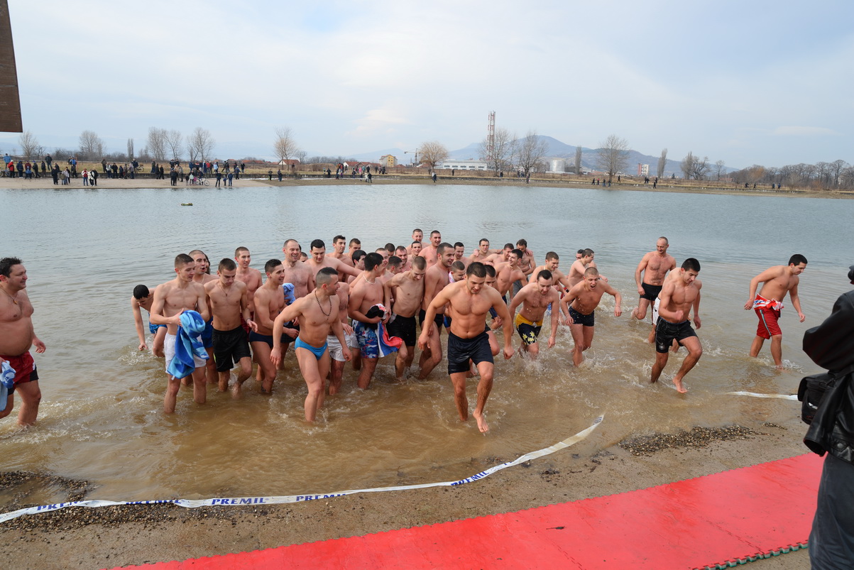 У ледено хладној води Градског купалишта у Пироту, које је делом било и под ледом данас се, на један од највећих хришћанских празника Богојављење, у пливању за Часни крст надметало 50 мушкараца, али и две даме.