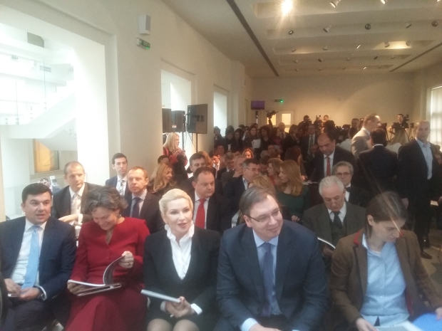 Najpre se pred brojnim gostima i visokim funkcionerima Vlade pojavila Ana Brnabić, potpredsednica NALEDa. Naš lični utisak, da se radi o veoma pametnoj, autoritativnoj dami punoj znanja. Nama se dopao i njen stil, način obraćanja . Voditelj, piznato tv lice, takodje je davala ,,punu sliku,, kompletnoj atmosferi. Evo Ane Brnabić. Interesantno da je svako od članova Upravnog odbora Naleda, premijeru i ministrima uručivao Sivu knjigu. Tek toliko, da se zna!!!
