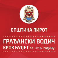 Pozivamo vas da posetite web stranicu opštine Pirot na kojoj se nalazi prvi Građanski vodič kroz budžet naše opštine. Ovaj dokument pomoći će vam da bolje sagledate opštinsku kasu – kako se puni, na šta se novac troši, koji su najvažniji projekti koje će opština Pirot finansirati u 2016. godini, kao i kako smo realizovali projekat uključivanja građana u budžetski proces.