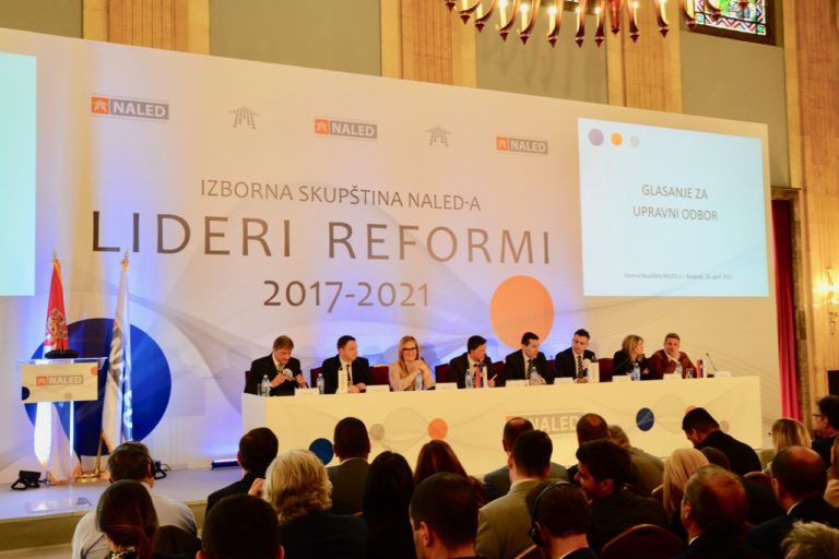 Skupština Nacionalne alijanse za lokalni ekonomski razvoj (NALED) izabrala je danas novi Upravni odbor koji će u naredne četiri godine predvoditi NALED i inicijative za unapređenje poslovnog okruženja i jačanje konkurentnosti Srbije. Na svečanosti u Skupštini grada Beograda, gradonačelniku Pirota, ali i Gradu Loznici i predstavnicima nekoliko jakih kompanija dodeljena su priznanja za deceniju podrške ekonomskom razvoju Srbije kroz članstvo u NALED-u.