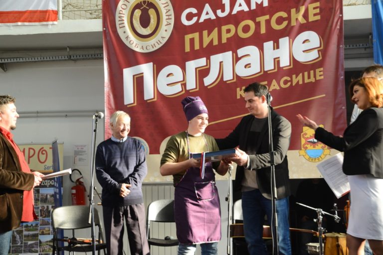 Četrnaestogodišnji Žarko Petrović pobednik je ovogodišnjeg Sajma pirotske peglane kobasice, odlukom sedmočlanog stručnog žirija. Peglanu kobasicu Žarko, kako je kazao Pirotskim vestima, pravi od sedme godine sa ocem Predragom, kome pomaže u spravljanju sve popularnijeg pirotskog specijaliteta. Treće mesto osvojio je Ninoslav Stojadinović a drugoplasirana je ekipa “Oh peglana”, Miljana Tošića.