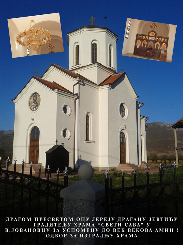 U nedelju 10-og maja od 8,00 časova u hramu Svetog Save u Velikom Jovanovcu na dan spaljivanja mošti Svetog Save na Vračaru, njegovo preosveštenstvo episkop Niški gospodin dr. Jovan Purić služi će Svetu Arhijerejsku Liturgiju uz sasusluženje Arhijerejskog namesnika igumana Serafima i pirotskog sveštenstva.