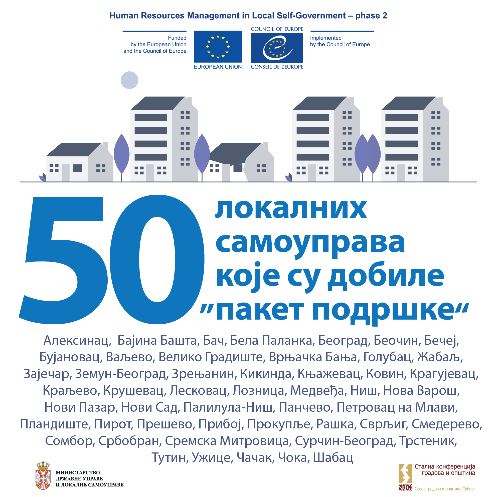 Program „Upravljanje ljudskim resursima u lokalnoj samoupravi – faza 2“, vredan je 4 miliona evra i zajednički ga finansiraju Evropska unija i Savet Evrope a sprovodi Savet Evrope u saradnji sa @MDULS i @SKGO.